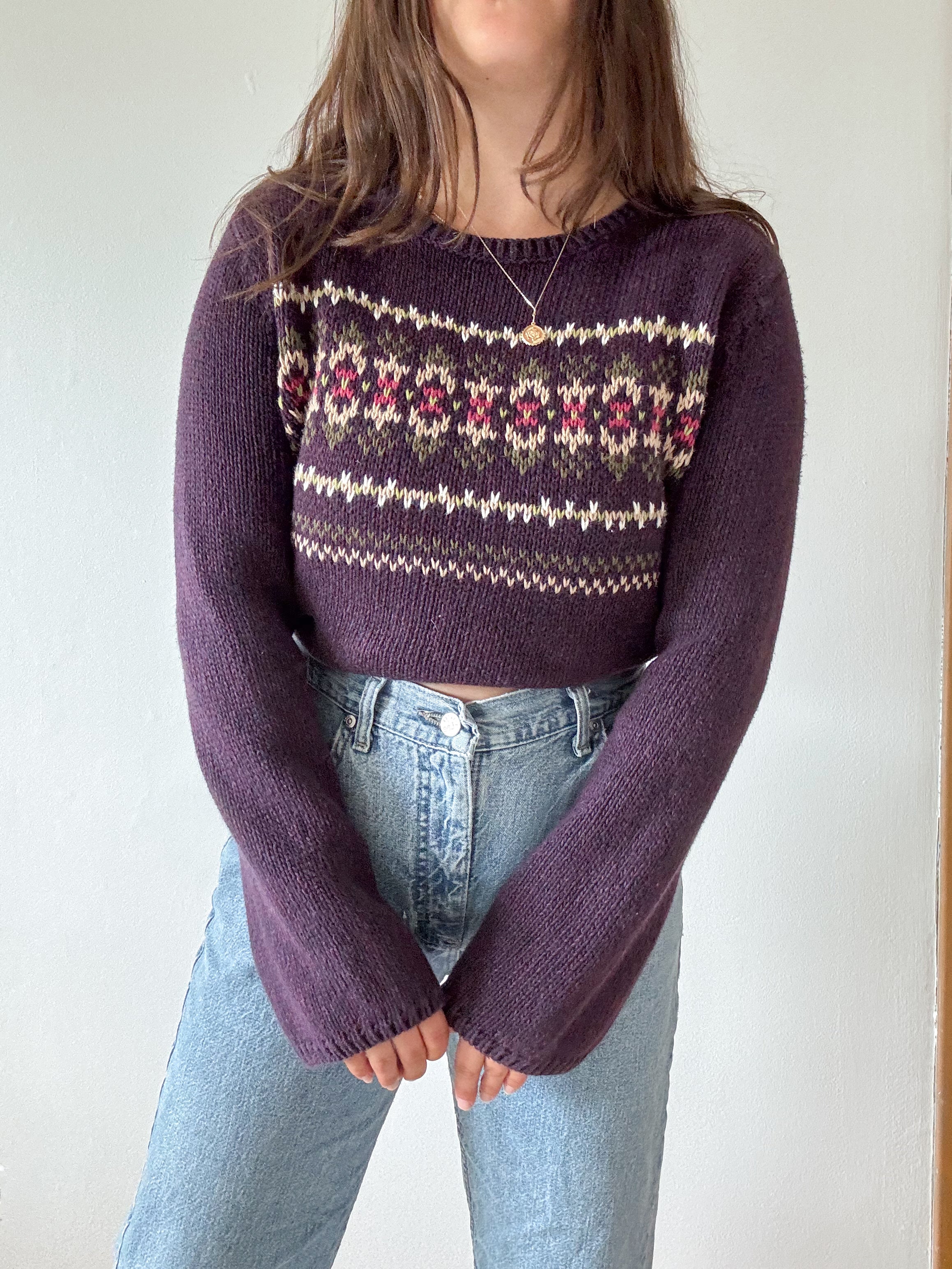 The Raspberry Fair Isle Neck Sweater (S)