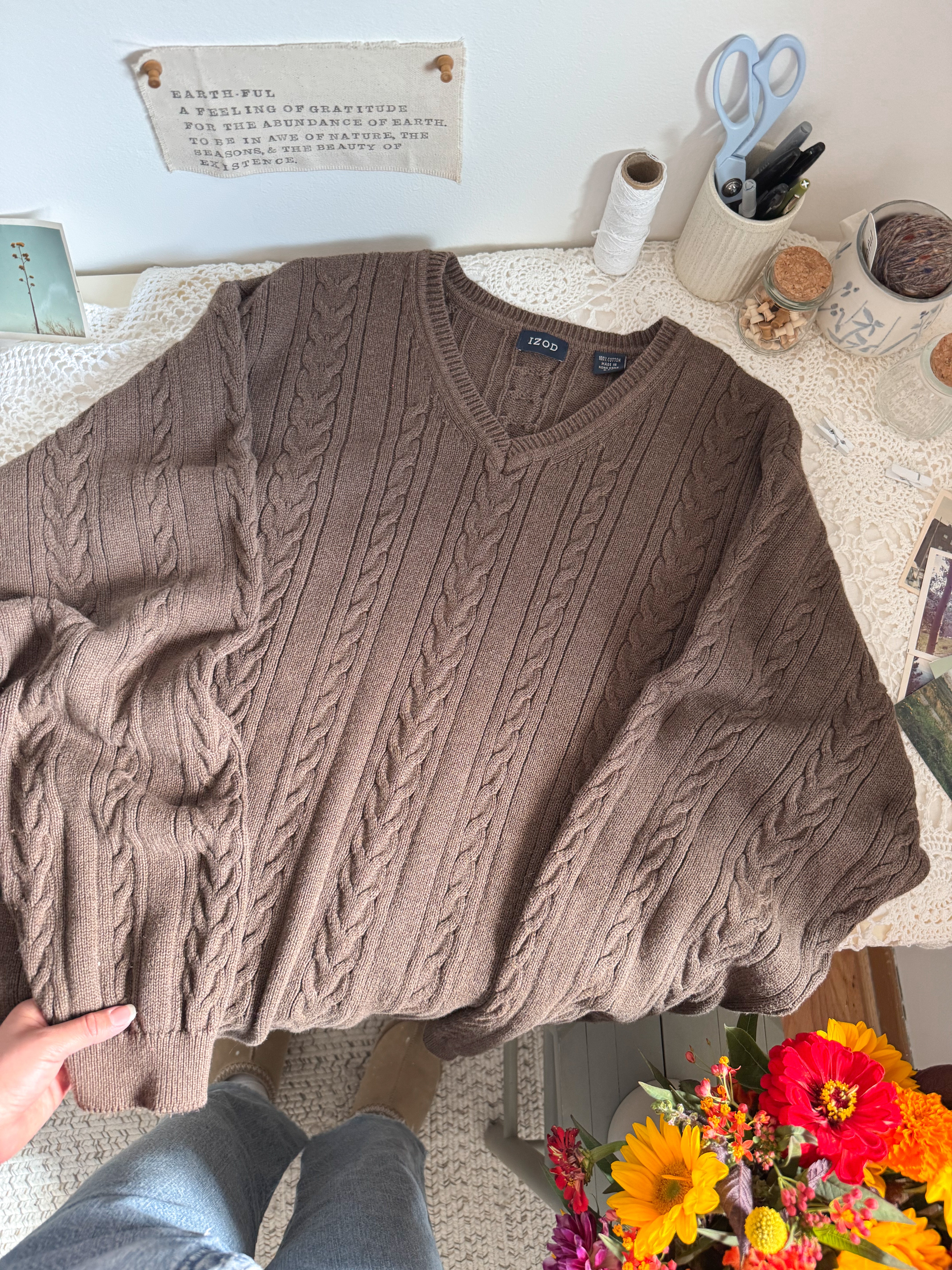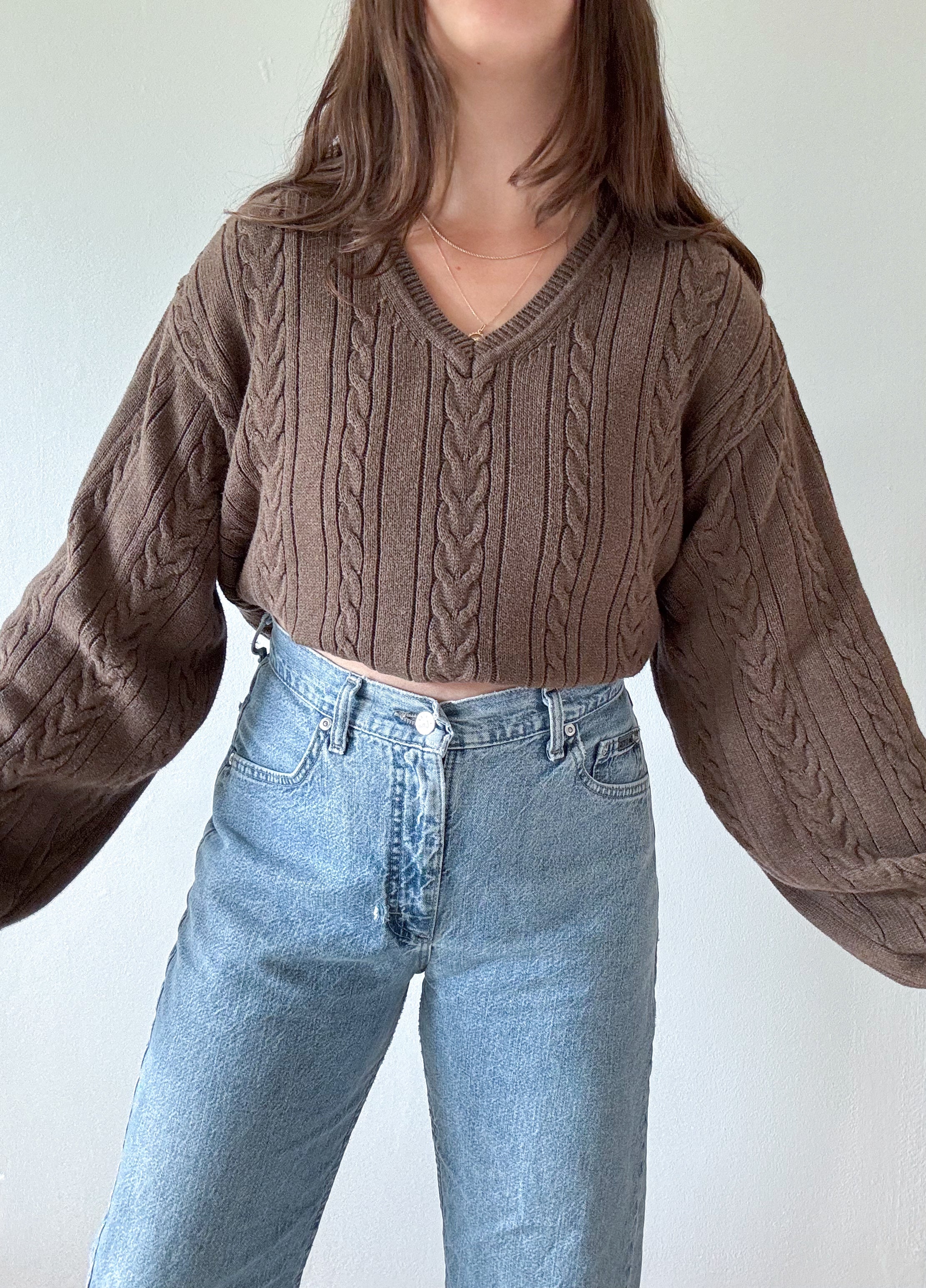 The Brown Cable Knit V Neck Sweater (XXL)